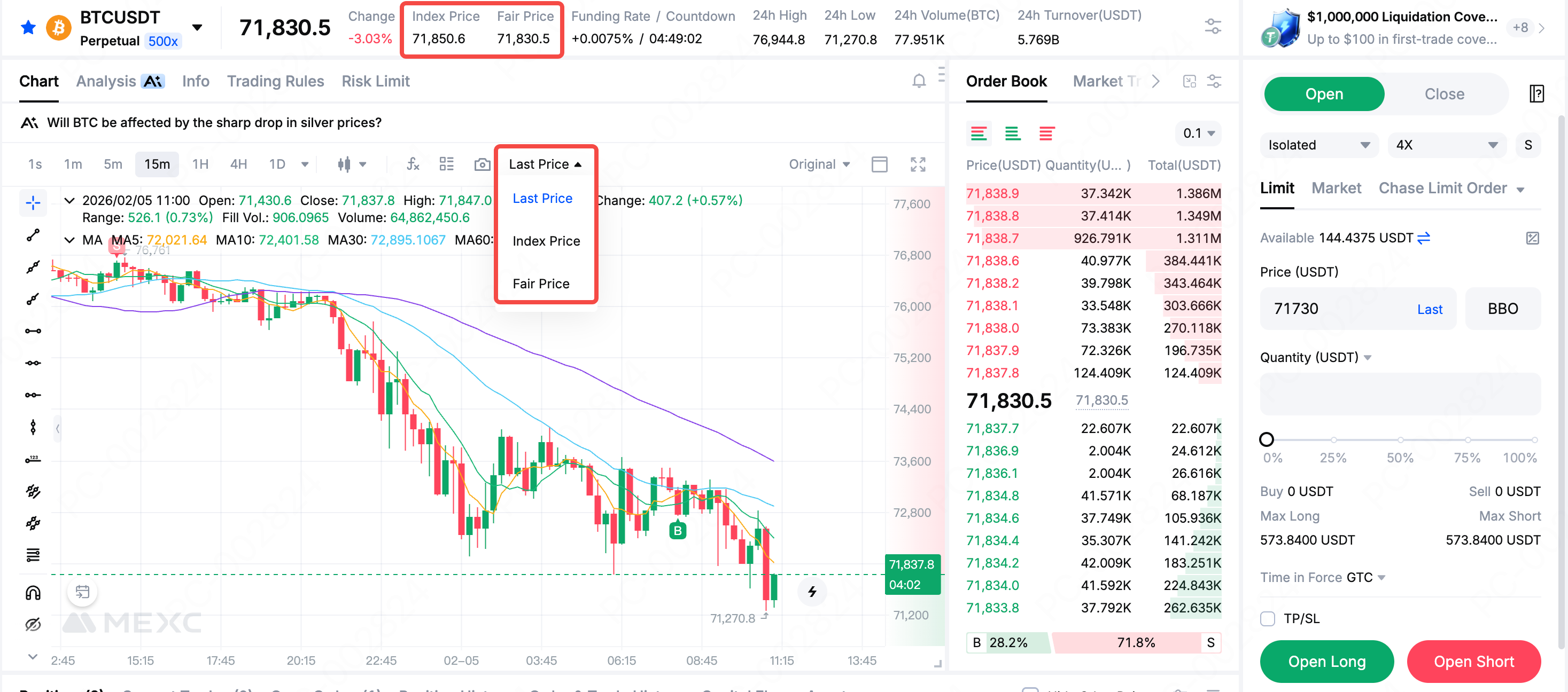 5. كيفية التبديل بين سعر المؤشر والسعر العادل والسعر الأخير على MEXC