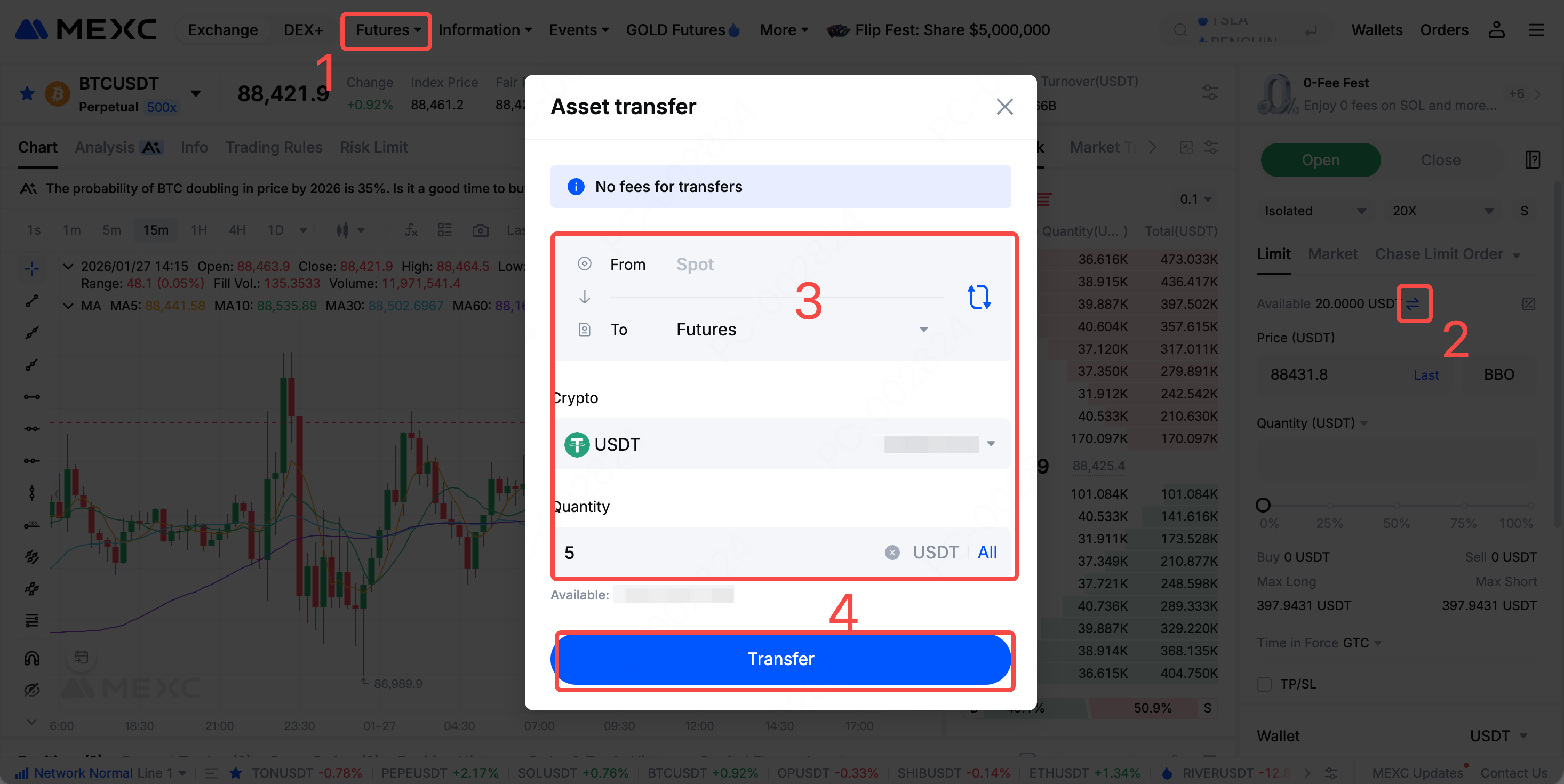 3. كيفية تداول العقود الآجلة على موقع MEXC الرسمي.