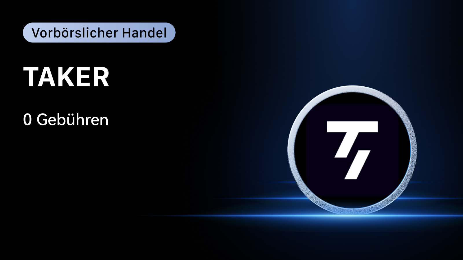 Wir freuen uns, ankündigen zu können, dass Taker Protocol (TAKER) bald für den vorbörslichen Handel auf MEXC verfügbar sein wird. Sichern Sie sich einen Vorsprung, bevor es auf dem Spot-Markt gelistet wird!