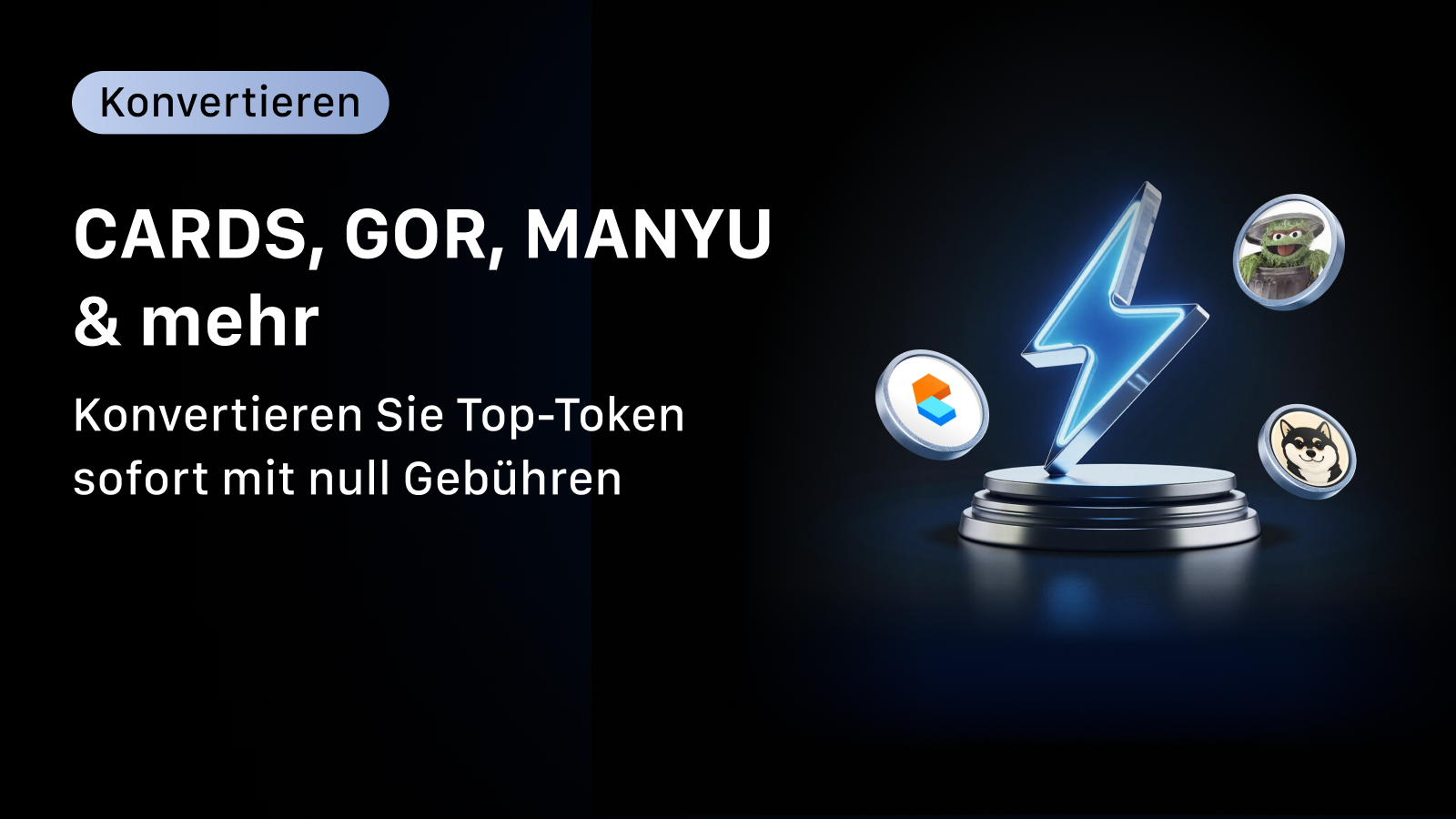 Wir freuen uns, bekannt geben zu dürfen, dass MEXC am 12. September 2025 um 12:00 Uhr (UTC+2) die Tokens CARDS, CREPE1, AURASOL, GOR, KORI, MANYU, MOMO, NOICE, TRWA und UOMI bei Konvertieren auflisten wird.