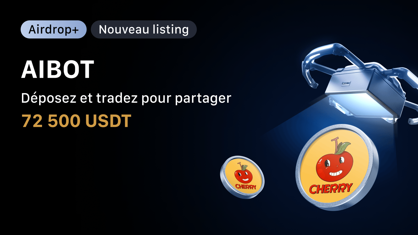 Rejoignez-nous pour célébrer le listing de Cherry AI (AIBOT) sur MEXC avec un événement spécial ouvert à la fois aux nouveaux et aux anciens utilisateurs. Ne manquez pas votre chance de partager cette incroyable cagnotte et de profiter de certains des frais les plus bas du marché en tradant sur MEXC !