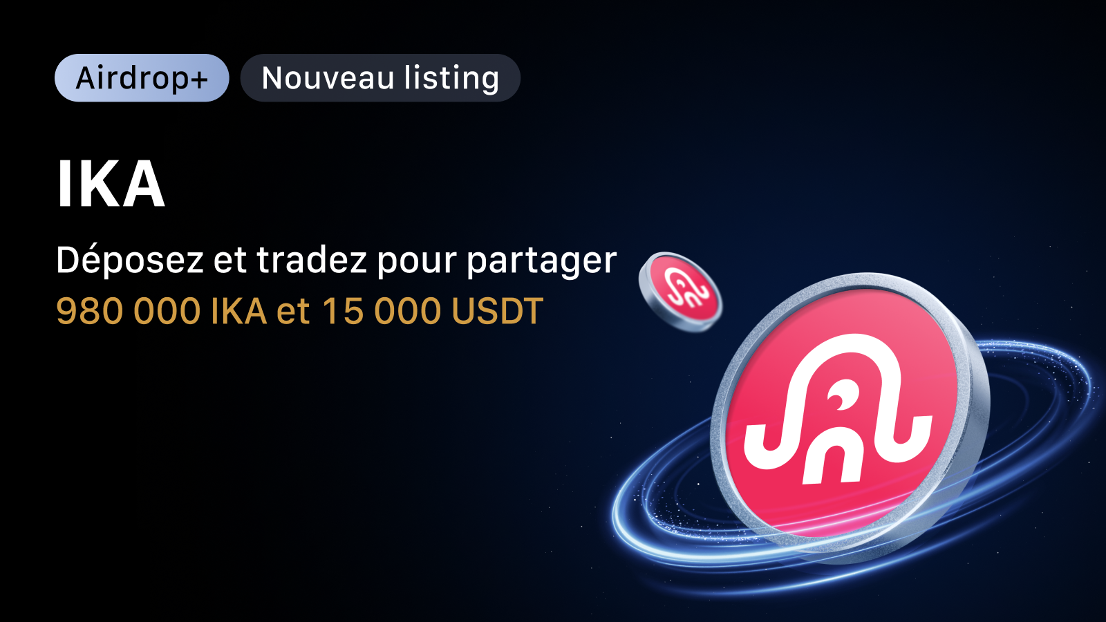 Rejoignez-nous pour célébrer le listing de Ika (IKA) sur MEXC avec un événement spécial ouvert aux nouveaux comme aux anciens utilisateurs. Ne manquez pas votre chance de partager une cagnotte exceptionnelle tout en profitant des frais les plus bas du marché en tradant sur MEXC !