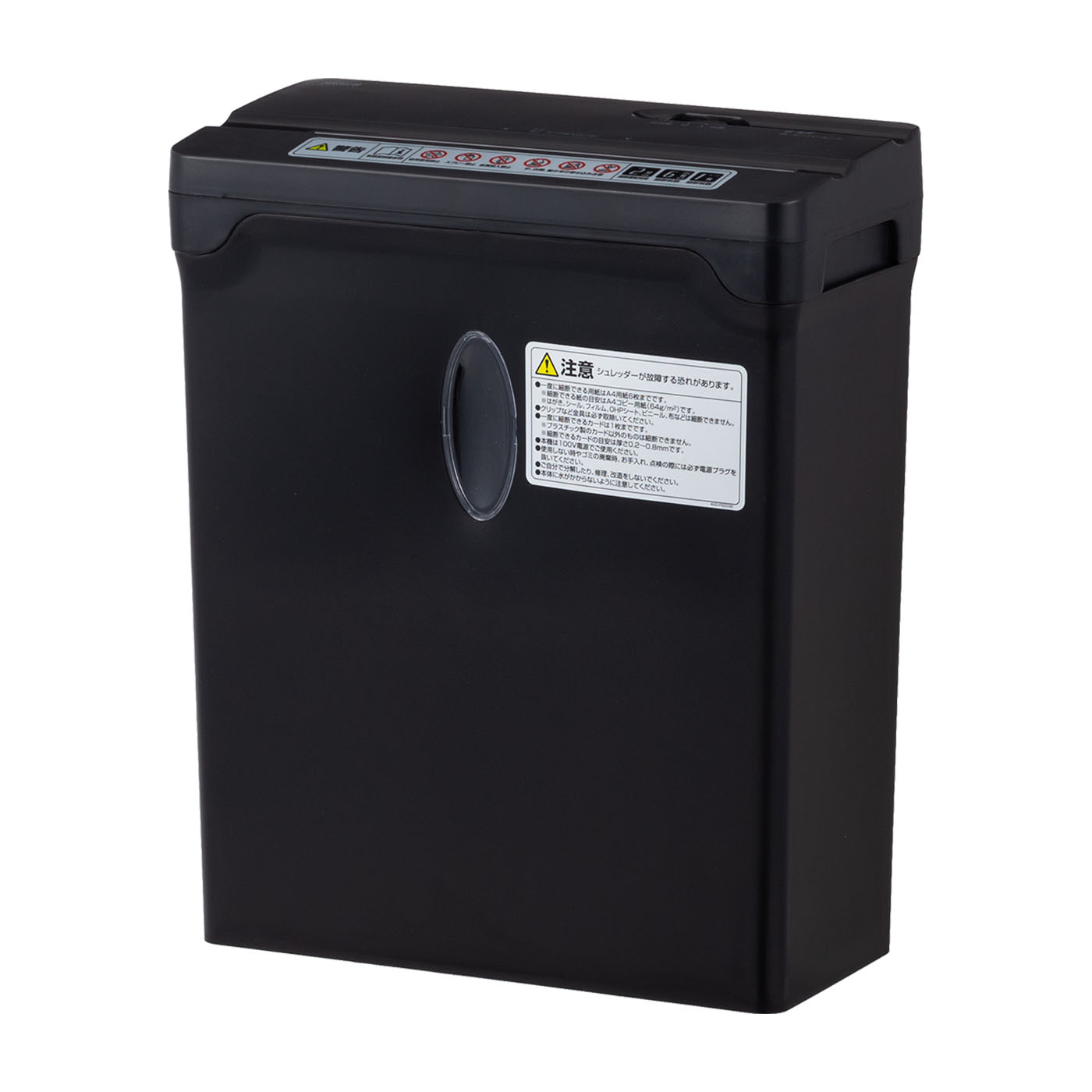 サンワサプライの「シュレッダー 400-PSD030」は、細断スピード重視で、一度に大量の紙を処理したい人向きの商品です。検証で30枚の紙を裁断するのにかかった時間は、わずか33秒でした。連続使用は2分が上限ですが、一度に6枚まで投入可能で効率的に作業できます。紙類のほか、クリップ・クレジットカードも細断可能です。紙を検知するセンサーがあり、連続で細断するときに毎回スタートボタンを押さなくてもよいのはメリット。しかし、投入をサポートする溝は5.0mmとかなり浅く、スムーズに紙が投入されにくい印象です。クロスカットで紙くずがかさばるものの、ダストボックスの容量は10Lと大きく、ゴミを捨てる回数を抑えられます。フタを外してゴミを捨てられるので、引き出し式のように散らかる心配も少ないでしょう。一方で、細断後の1片は、短辺は平均4.18mm・長辺は平均28.48mmと大きく、文字が小さい場合は文脈から判読できる可能性も。情報をしっかり管理する目的であれば、より細かく細断できるものを候補に入れるほうがよさそうです。