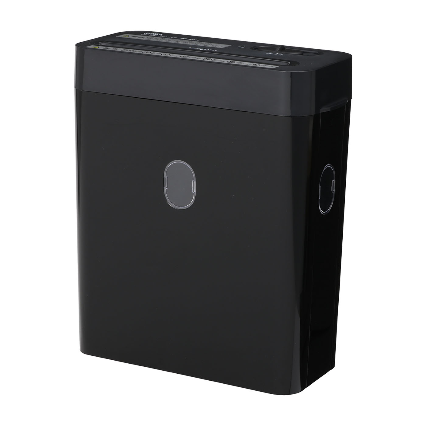 オーム電機の「マイクロカットシュレッダー SHR-MX300」は、一度にシュレッダーする量が少なく、ゴミが捨てやすいものを探している人におすすめです。一度に投入できるのは3枚・連続使用は3分までですが、マイクロカットで細断も細かいうえにスピーディ。こまめに細断したい一人暮らしの人にぴったりです。検証したところ、短辺は平均3.30mm・長辺は平均8.64mmで、小さめの文字や番号も読み取れないレベルまで細かくできました。30枚あたりの細断スピードは53秒なので、3分の上限時間以内に100枚近くシュレッダーできる計算に。個人情報が記載された書類やダイレクトメールなども、短い時間で細かくできるのはうれしいポイントです。オートリバース機能などはありませんが、紙を検知するセンサーを搭載しています。紙を入れるだけで細断をスタートするので、連続で投入しやすいのは魅力。投入をサポートする溝は33.0mmと長く、紙をセットする際もスムーズです。ただし、ホチキスやクリップなどの細断はできず、その都度外す手間がかかるのは惜しい点。紙以外のものには非対応で、CD・DVD・カードなども投入できません。自営業やフリーランスで効率よく書類を処分したい人にはあまり向かないでしょう。とはいえ、紙をしっかり細かくできるうえに、スピードも申し分なし。少量をこまめに処理したい人におすすめできる1台です。