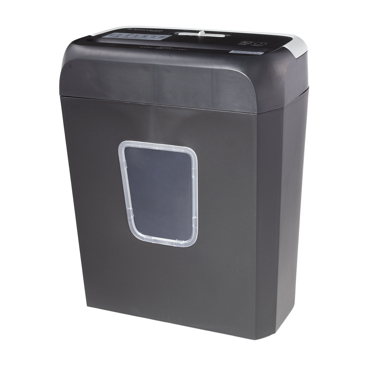 ナカバヤシの「パーソナルシュレッダ 506 NSE506」は、基本性能のバランスがとれたシュレッダーがほしい人におすすめです。今回検証した項目ではどれも高い評価を獲得しました。とくに細断の細かさ・スピードなどが優秀で、連続して使える目安時間は15分なので、まとめて作業したい人も使いやすいでしょう。細かく細断するマイクロカットを採用。1辺のサイズを測ったところ、短辺が平均1.78mm・長辺が平均11.13mmで、小さな文字も判別困難なレベルまで細かくできました。文脈の読み取りは難しいため、情報を復元される心配は少ないといえます。ダストボックスの容量は13Lと大きく、細断後の1辺が小さく、クロスカットなどに比べるとゴミがかさばらないのもうれしいポイント。大きめの窓でゴミの量をすぐに確認できます。引き出し式で紙くずが周囲に散らばりやすいとはいえ、ダストボックス内にゴミが引っ掛かるような段差はありません。細断もスピーディで、検証では30枚を48秒で細断できました。検証では一度に8枚まで投入できたので、枚数が多いときも時間をかけずに細断できるでしょう。投入のしやすさも良好です。紙を検知するセンサーを搭載し、紙を投入するだけで細断がスタート。投入口がやや狭いものの、詰まりを感知したら自動で吐き出すオートリバース機能も搭載しています。CD・カード・クリップには非対応ですが、一般的なホチキスならそのまま投入できて便利です。ダイレクトメールをサッと処分したり、書類をまとめてシュレッダーしたりと、日常的に役立つ頼もしい1台。性能や使い勝手に優れた家庭用のシュレッダーを持っておきたい人は、ぜひ候補に入れてくださいね。