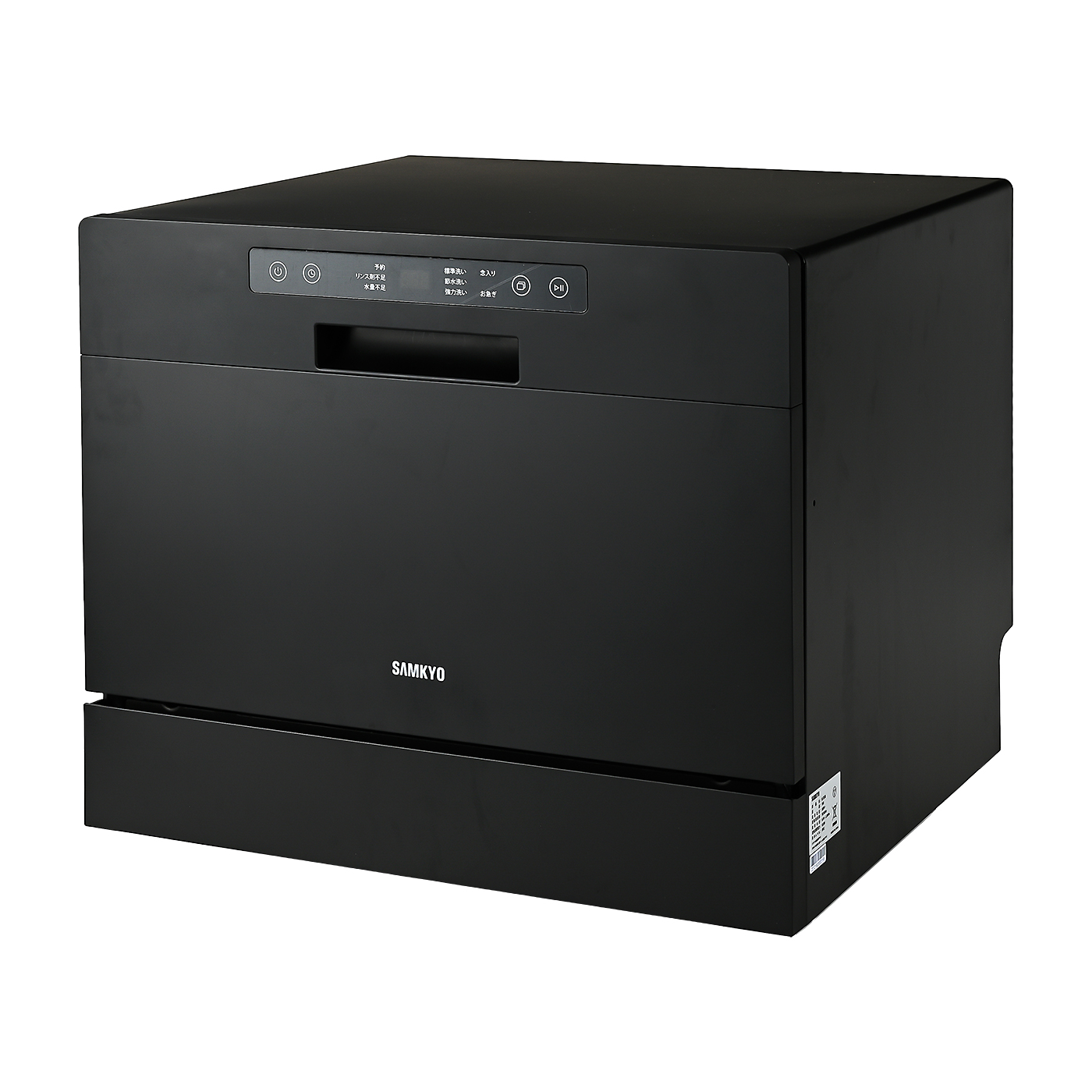 SAMKYOの「T60-B」は標準収納容量32点で5人用の食洗機。庫内の容積が大きく、鍋やフライパンなどの大きなものも余裕を持って入れられます。洗浄力の検証ではカレーの汚れに対して高い効果を発揮。皿とスプーンにべったりついたカレーの汚れをきれいに落とせました。しかし、ご飯粒はあまり洗浄できない結果になったため、こびりついたご飯粒を洗浄する際はは予洗いが必須です。乾燥力はあまり高くなく、水滴が多く残る結果に。運転後はドアを開けて自然乾燥をさせたほうがよさそうです。サイズが大きいため設置場所は選びますが、そのぶん食器は快適に出し入れできます。バケツ給水式で蛇口から直接給水ができるため、給水カップを使用してタンクに自ら給水する必要がない商品。キッチンが広くて食洗機とバケツを設置できるスペースがあり、手動でのタンクへの給水作業が面倒だと思う人は検討してもよいでしょう。