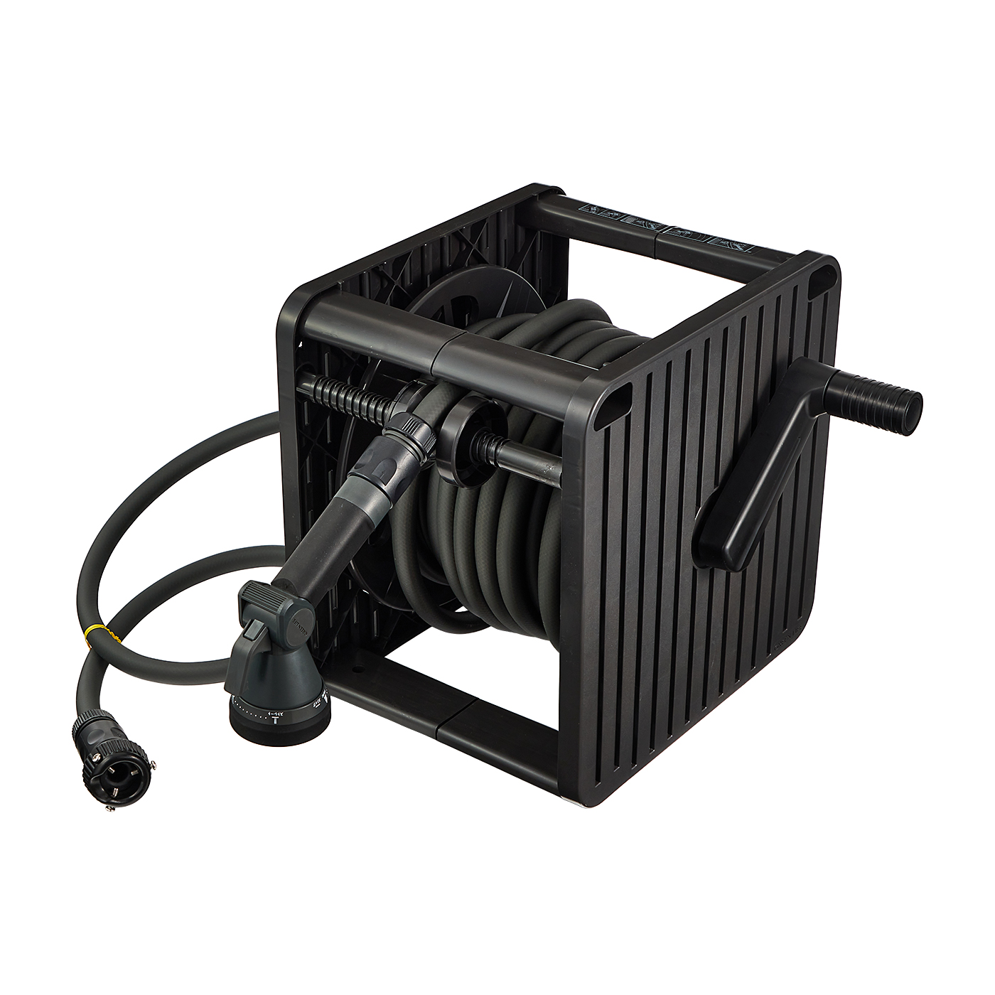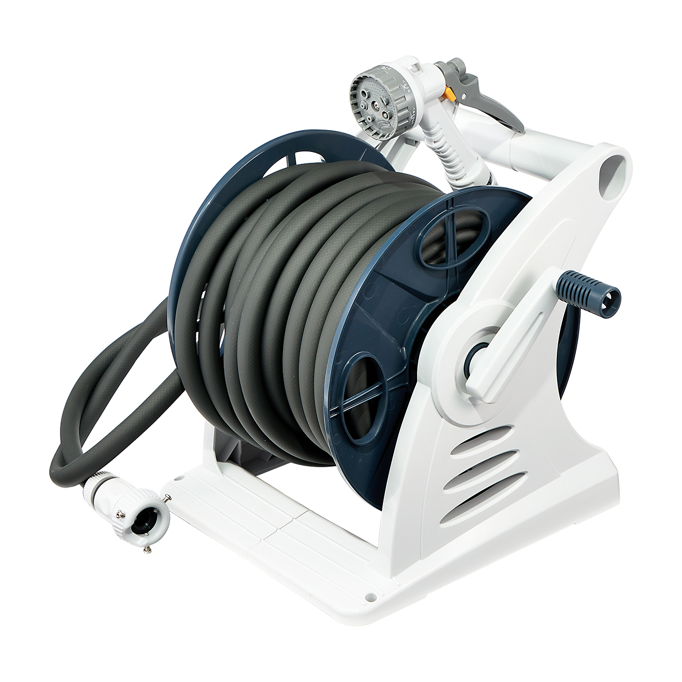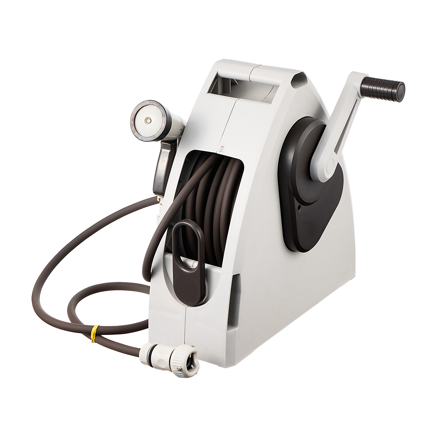 グリーンライフの「Gムーブ20D PRGM-20D(AGY)」は、外に置きっぱなしにしたい人や外観を重視する人におすすめです。ケースがホースを完全に覆う形ではないため、外に出しておいても汚れを溜めづらいのが魅力。そのうえ、アッシュグレーのシックなカラーリングが庭や玄関先にマッチします。散水パターンは豊富で、ジェット系やシャワー系、カクサンやジョロなど多彩なパターンに対応していました。植物の種類や用途に合わせて切り替えられて便利です。水圧も平均0.04MPaと、十分なパワーで散水できます。一方で取りつけにはプラスドライバーが必要で、完全ツールレスでできるものと比較するとやや面倒な印象です。巻き取りに合わせて動くガイドローラーつきで、ホースがねじれたり絡んだりすることなくスムーズに巻き取れました。20mとホースは長いのですが、本体重量は4.01kgと重すぎず、取っ手も搭載。間隔の離れた場所に狭い範囲で植物を育てている人には便利でしょう。グリップ自体はほどよい太さで握りやすいものの、トリガーはグリップ上部についていてやや使用しにくい印象。親指で操作する必要があり、トリガーを引くのに力が必要だと感じました。モニターからは「親指で押したり引いたりしなければならず、調整が難しい」との声も。長時間使用すると疲れを感じそうです。トリガーの操作は独特で慣れが必要ですが、それ以外の使い勝手は悪くなく外置きしやすい商品です。高価格帯ですが、実用的で庭になじみやすいおしゃれなホースリールを探している人には選択肢となるでしょう。