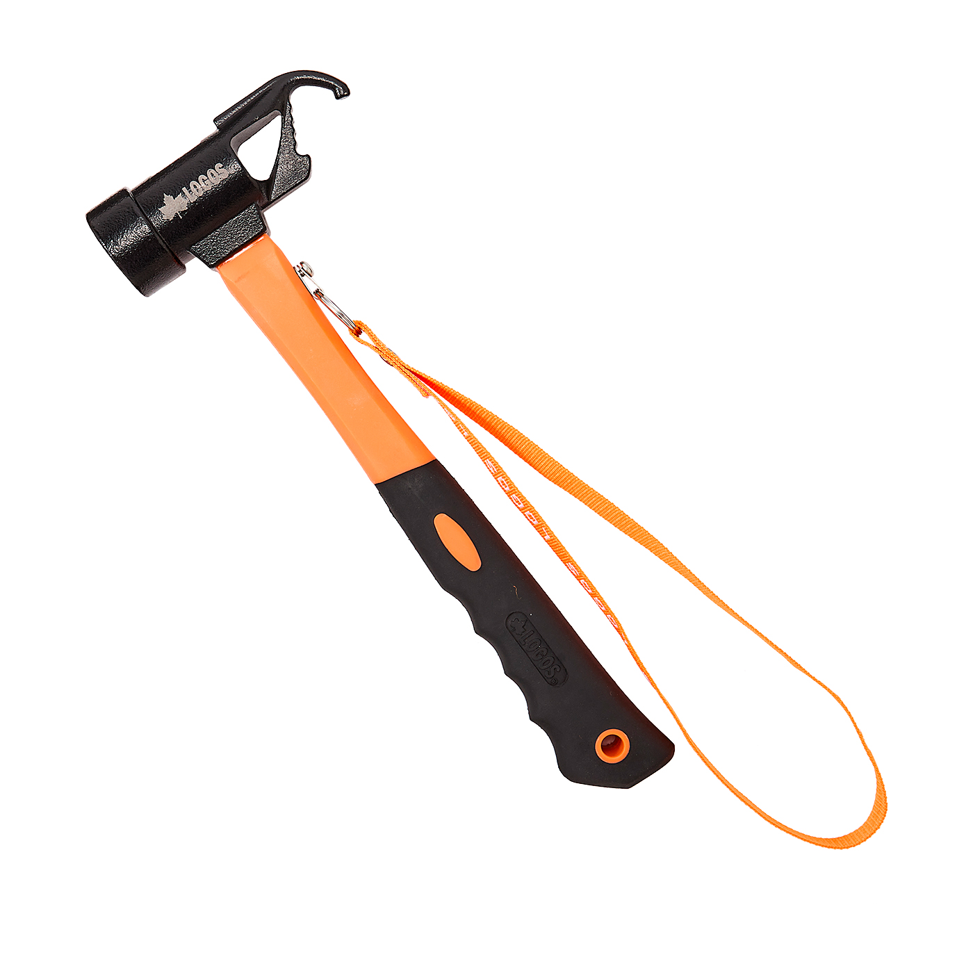 国内の有力なアウトドアブランドとして数多くのキャンプ用品を開発・販売しているロゴスコーポレーションの「ロゴス パワーペグハンマー」。ヘッドが鋼製のハンマーで、打撃面の直径が広く作られています。総重量は680gとやや重さがあるため、振り上げる際の力は必要でした。その分、振り下ろす力は必要なくヘッドの重みだけでペグが地面に刺さり、比較的少ない回数で打ち込めるといえます。また、持ち手の凹凸加工が握りやすいうえ、ラバー加工のおかげで手への衝撃が軽減されている印象です。機能面では、滑り止め加工・すっぽ抜け防止ベルト・ホール・フックの4つが備わっていたので多機能といえます。特にホール部分は比較的広く作られており、さまざまなペグのフックに対応しやすい点はうれしいポイントです。