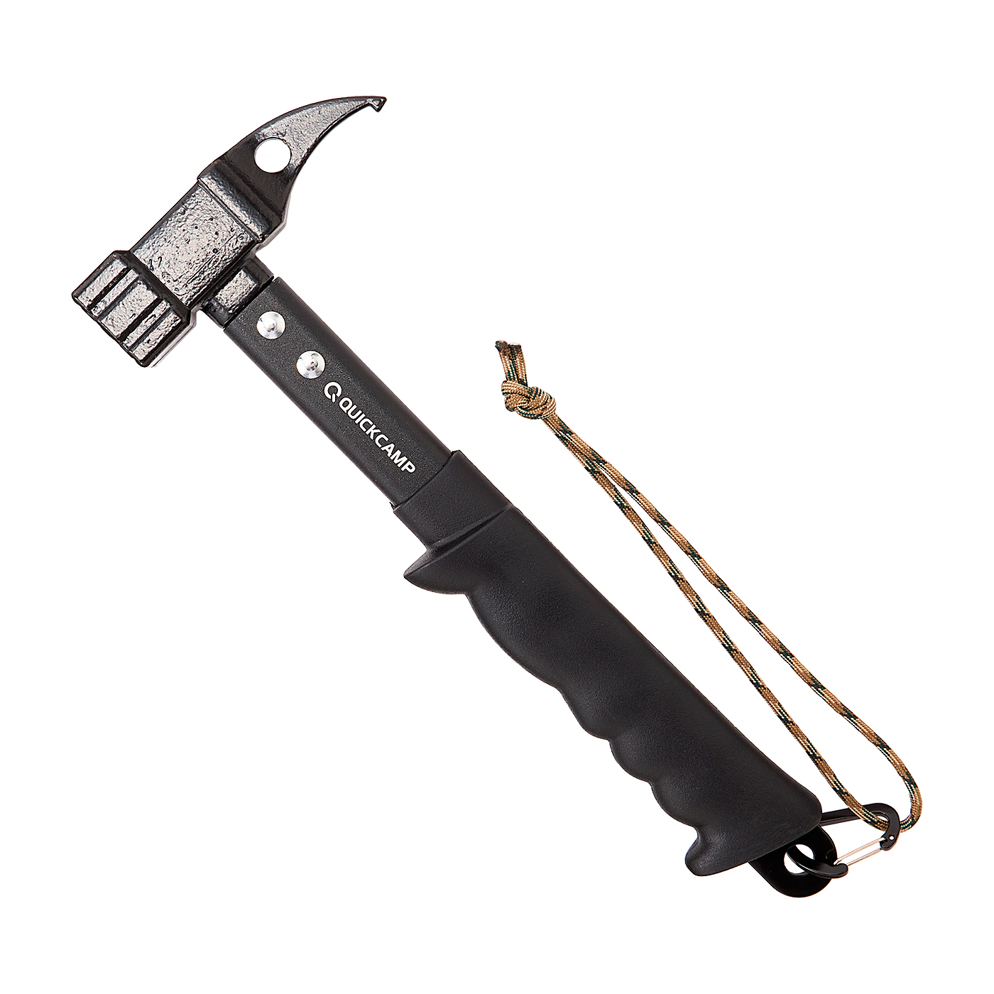 アウトドアを手軽に楽しめるよう、使いやすさを追求したグッズを数多く手がけているクイックキャンプの「アイアンペグハンマー」。ヘッドに鋳造鉄を使用したハンマーで、オールブラックのデザインと四角い打撃面が特徴のハンマーです。総重量は760gとずっしりとした重さがあるため、打ち込みやすいものの人によっては長時間使用すると疲れる可能性があります。また、打ち込んだ際の衝撃が伝わってきたのがやや気になりました。一方で、持ち手に凹凸加工があり握りやすく、力が込めやすかった点は好印象です。機能性は今回チェックした項目のうち、滑り止め加工・すっぽ抜け防止ベルト・ホール・フックの4つが備わっていたため多機能といえます。安全面に配慮されており設営や撤収作業に重宝するでしょう。