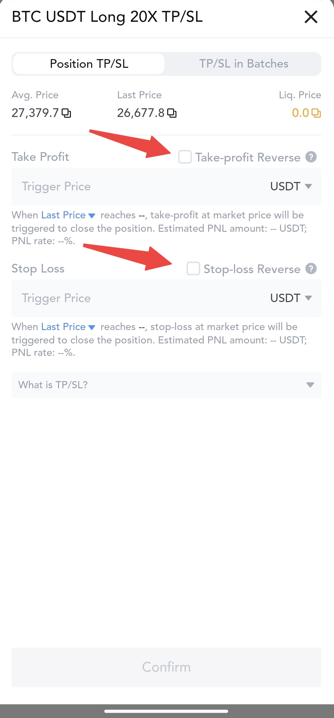 Step 2: Set the TP Trigger Price (Last Price, Fair Price, or Index Price) and choose the trigger condition (ROE or PNL).