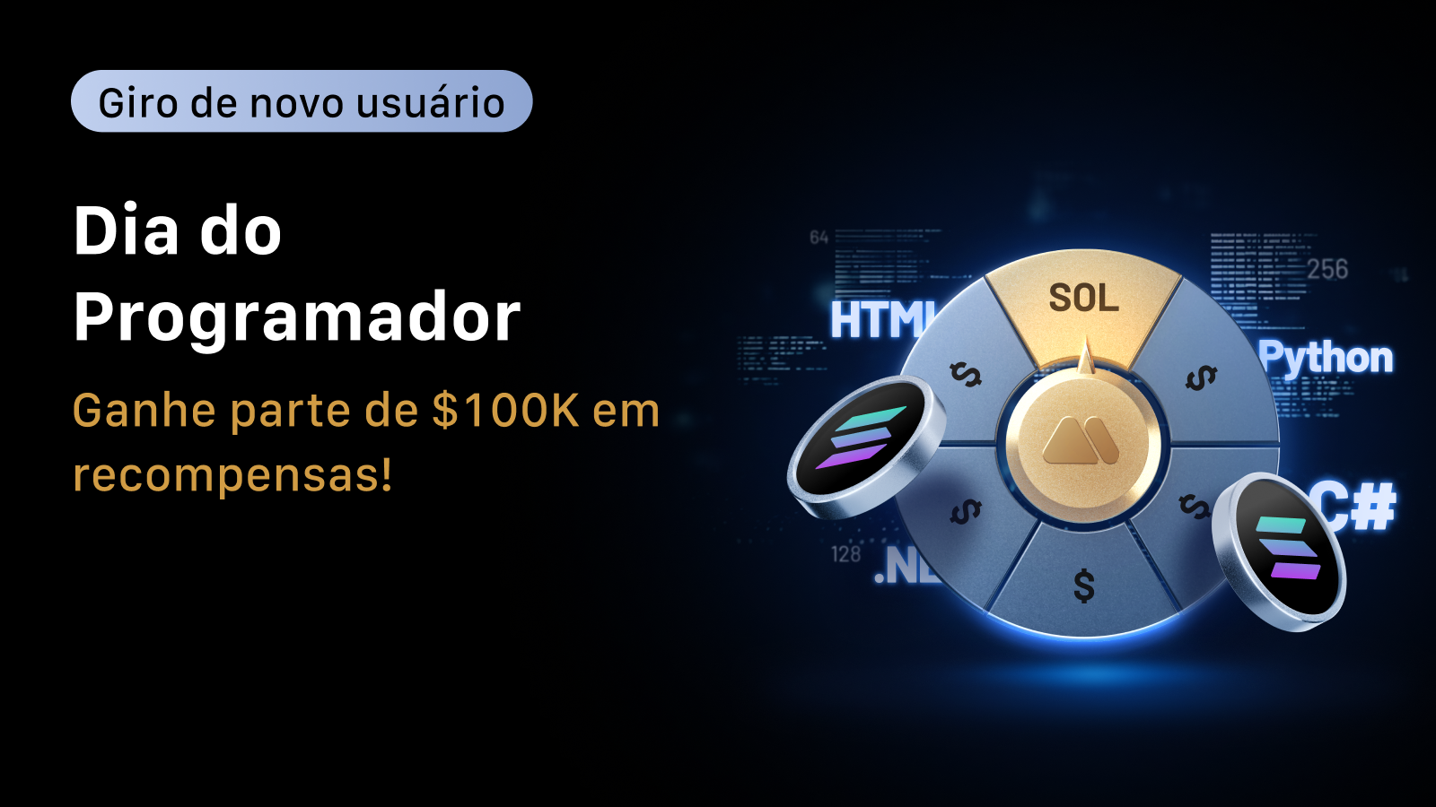 Participe da diversão do Giro da Sorte do Dia do Programador para ganhar recompensas incríveis - com um prêmio total de $100,000 em tokens em alta esperando por você!