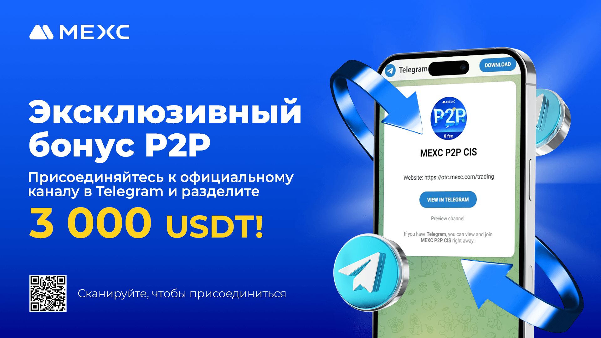 Если вы один из P2P-трейдеров MEXC, присоединяйтесь к официальному P2P-каналу в Telegram уже сейчас, и у вас появится шанс получить бонусные вознаграждения!