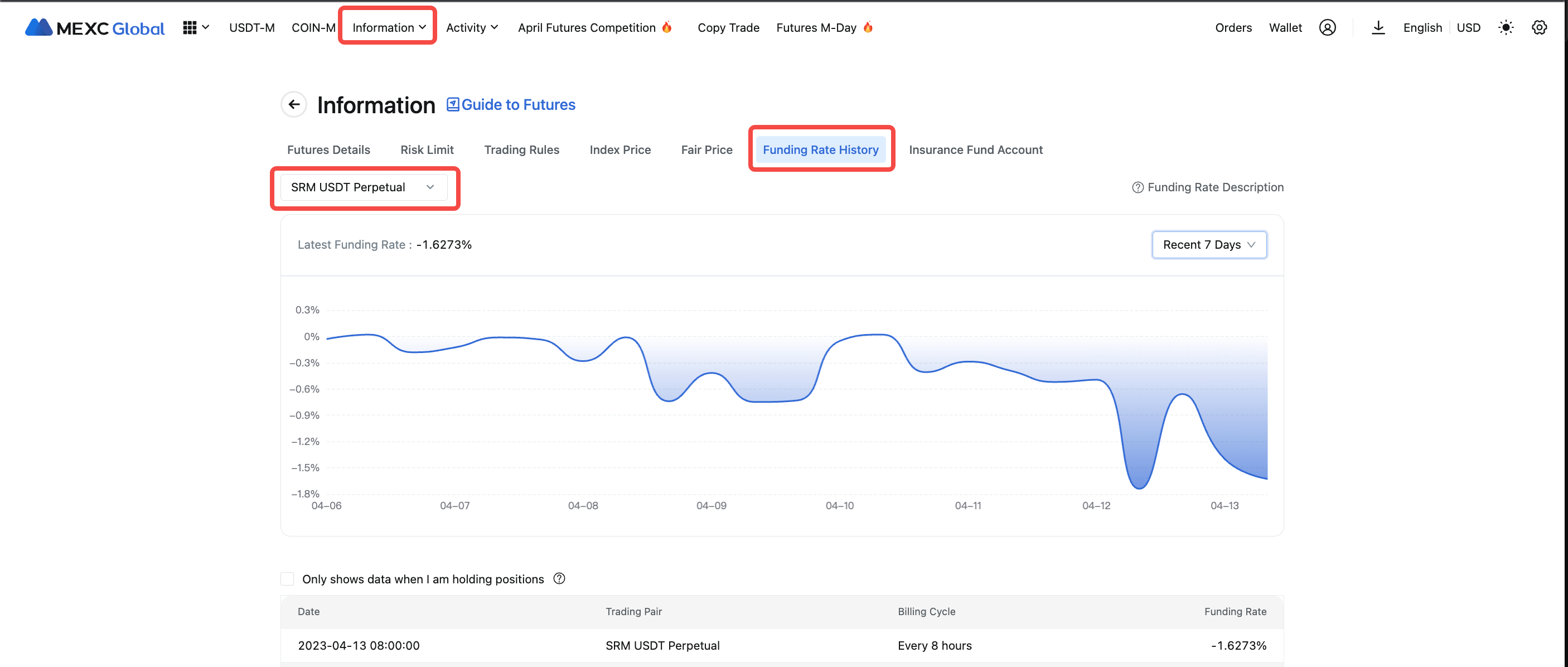 Web: Информация >> История ставок финансирования.