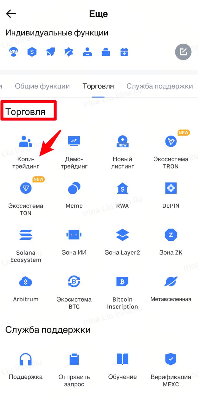 Вход в копи-трейдинг: Приложение> Еще> Торговля> Копи-трейдинг