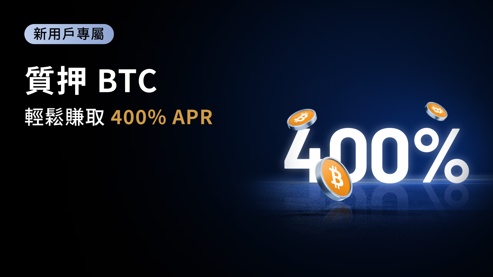 BTC 質押盛會現已重磅上線,僅限新用戶參加。只要質押 BTC,即可享有 400% APR,輕鬆賺取豐厚回報,機會難得,不容錯過!