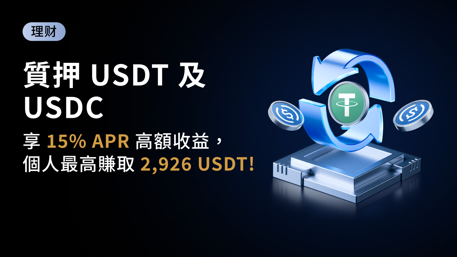 USDT 與 USDC 質押盛會:靈活存取享 15% APR,最高賺取 2,926 USDT!